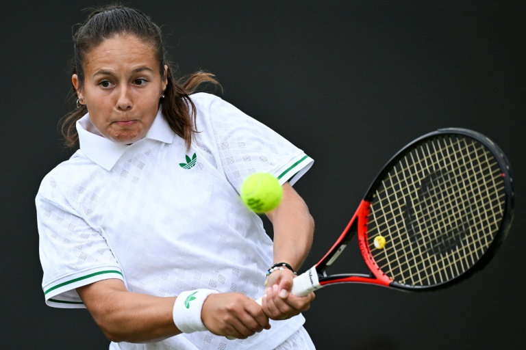 La tenista australiana Daria Kasatkina gikoea una bola de revés durante su partido contra la rusa Liudmila Samsonova durante el último torneo de Wimbledon, el 5 de julio de 2025 al suroeste de Londres